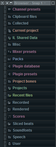 Al centro troveremo la finestra più importante del programma che è rimasta pressochè invariata dalle prime versioni che è lo step sequencer/channel window. In questa finestra è possibile visualizzare tutti i canali usati per gli strumenti del nostro progetto. Questa si mostra come uno step-sequencer che ci permette di programmare al volo semplici pattern per poter sentire subito suonare il nostro loop su cui andremo a costruire la nostra hit! In ogni canale è possibile inserire uno strumento o anche soltanto un campione audio.Oltre a programmare semplici pattern ritmici è possibile anche inserire note, programmare velocity e alcune automazioni e si potrà aggiungere swing al groove del loop creato. Notevole è anche la possibilità di categorizzare i canali e di poter quindi filtrarli per visualizzare ad esempio solo gli strumenti ritmici o le voci! E’ possibile anche assegnare colori diversi ai vari canali.